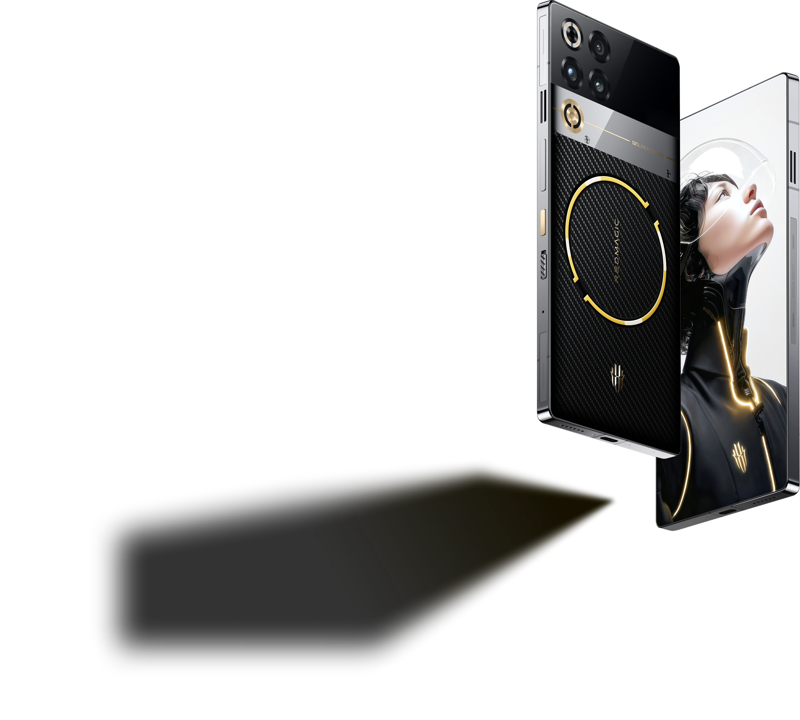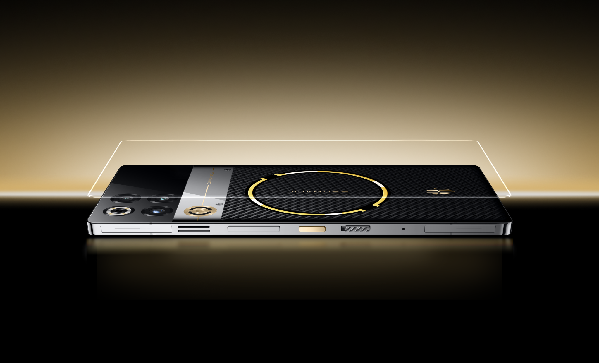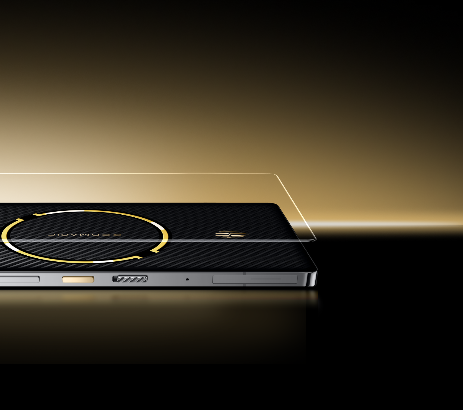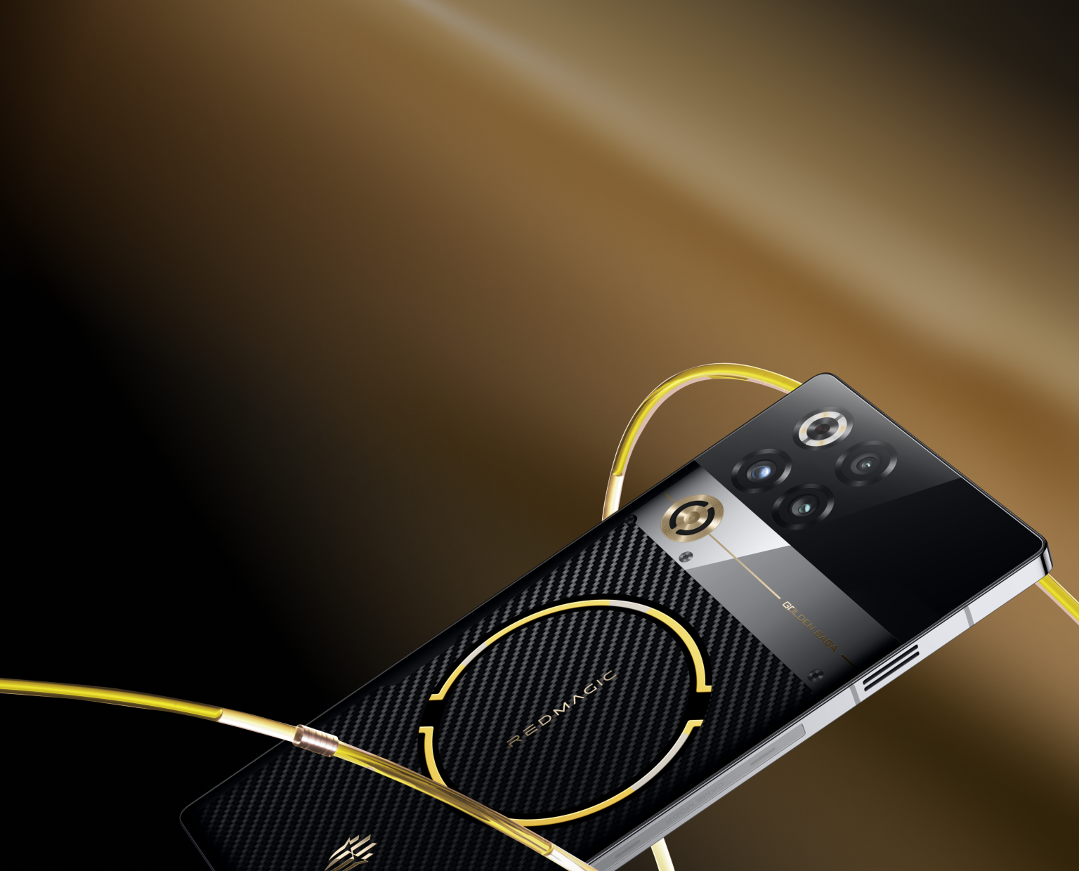 *El botón de encendido, los logotipos REDMAGIC y Golden Saga, y el pin de la tarjeta SIM están todos chapados en oro.