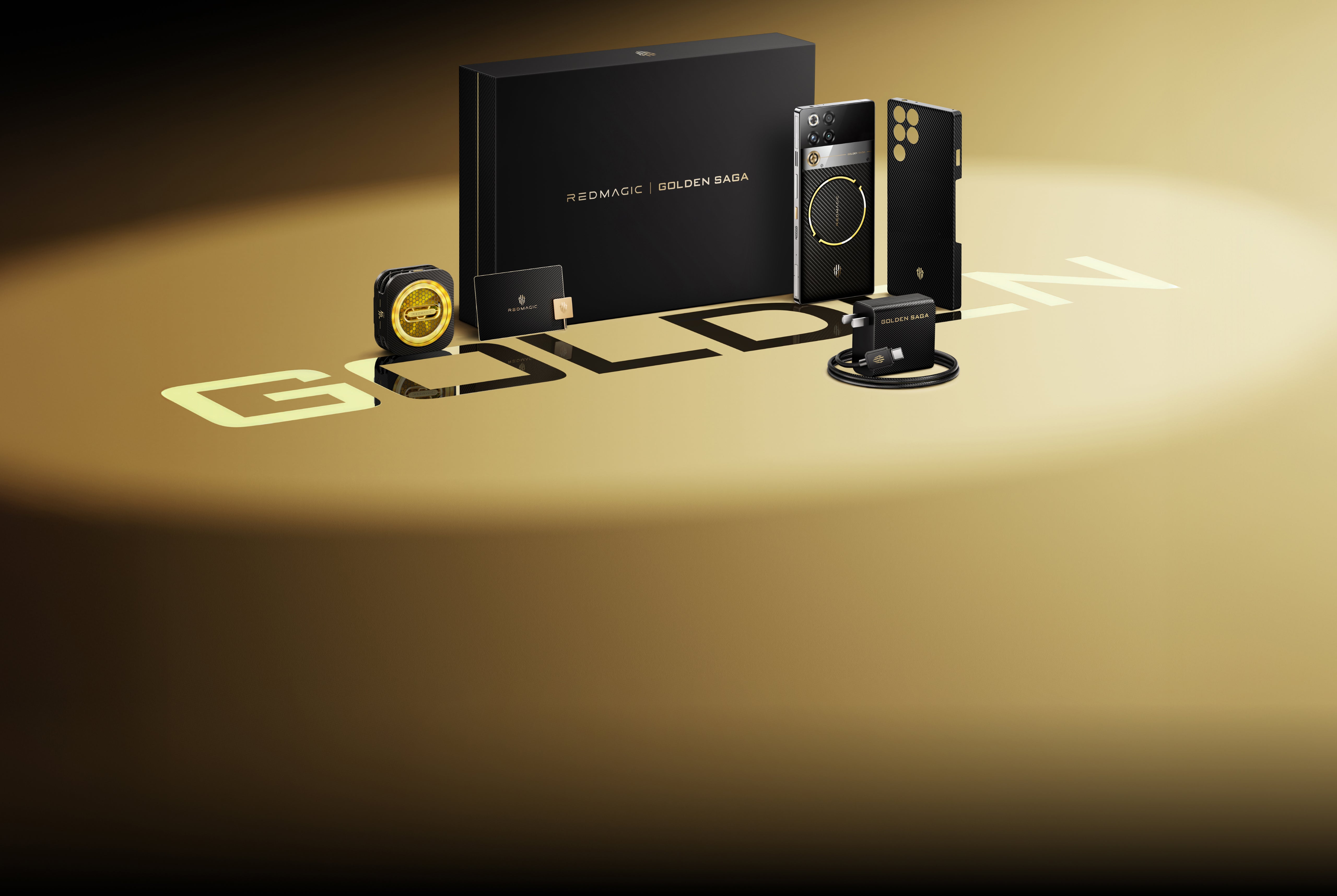 *El botón de encendido, los logotipos REDMAGIC y Golden Saga, y el pin de la tarjeta SIM están todos chapados en oro.